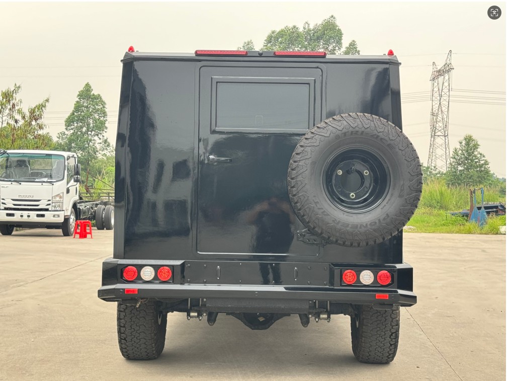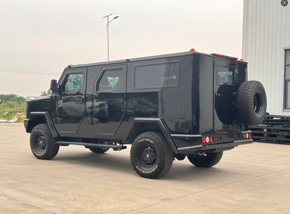 恐狼防弹SUV采用依维柯越野底盘改装而成。乘员舱六面防弹达到B4+级(B级防弹)或四面达到B6级,前门和中门的防弹玻璃窗的开度达60%,带内支撑体的轮胎和轮毂确保轮胎漏气时可以继续行驶。车内采用五门七座的布局。底盘配置3.0L柴油发动机、盘式制动器、BREMBO刹车卡钳、ESP车身稳定系统、全时四驱系统和3把差速锁。中控门锁、胎压监测、倒车雷达以及360°环影确保车辆使用的安全与便捷。恐狼防弹商务车适合安保公司、中资海外公司等单位执行人员安保、商务出行等任务。