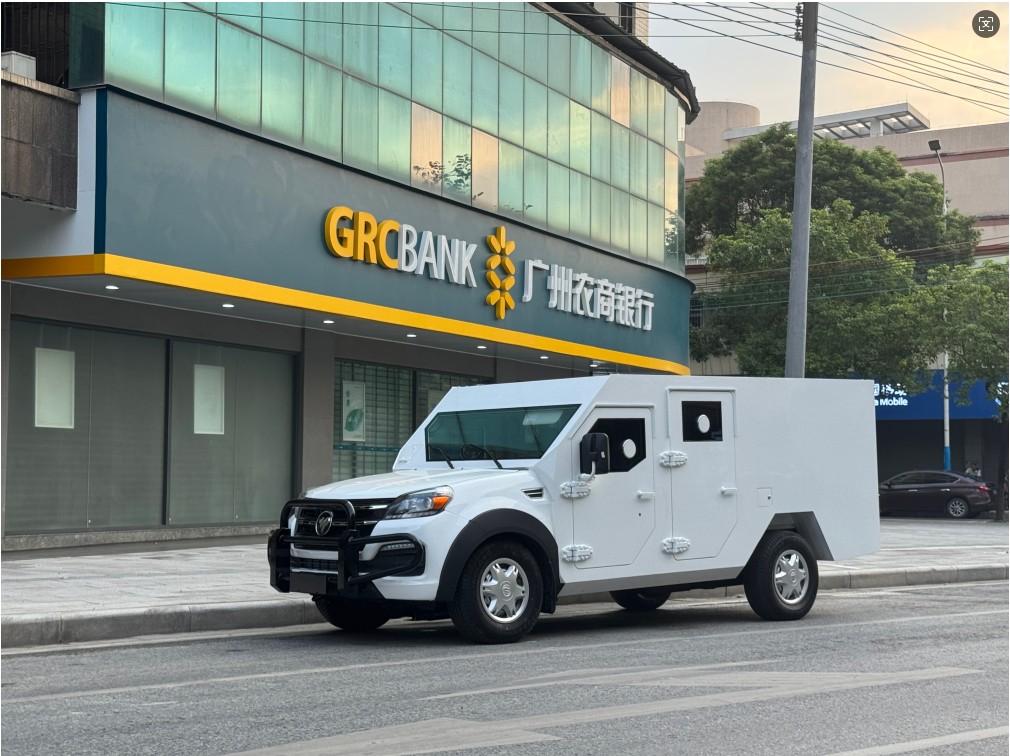 防弹级别:乘员舱五面(前后左右四面及车顶)B4+级,地板B3级;运钞舱六面B3级。
